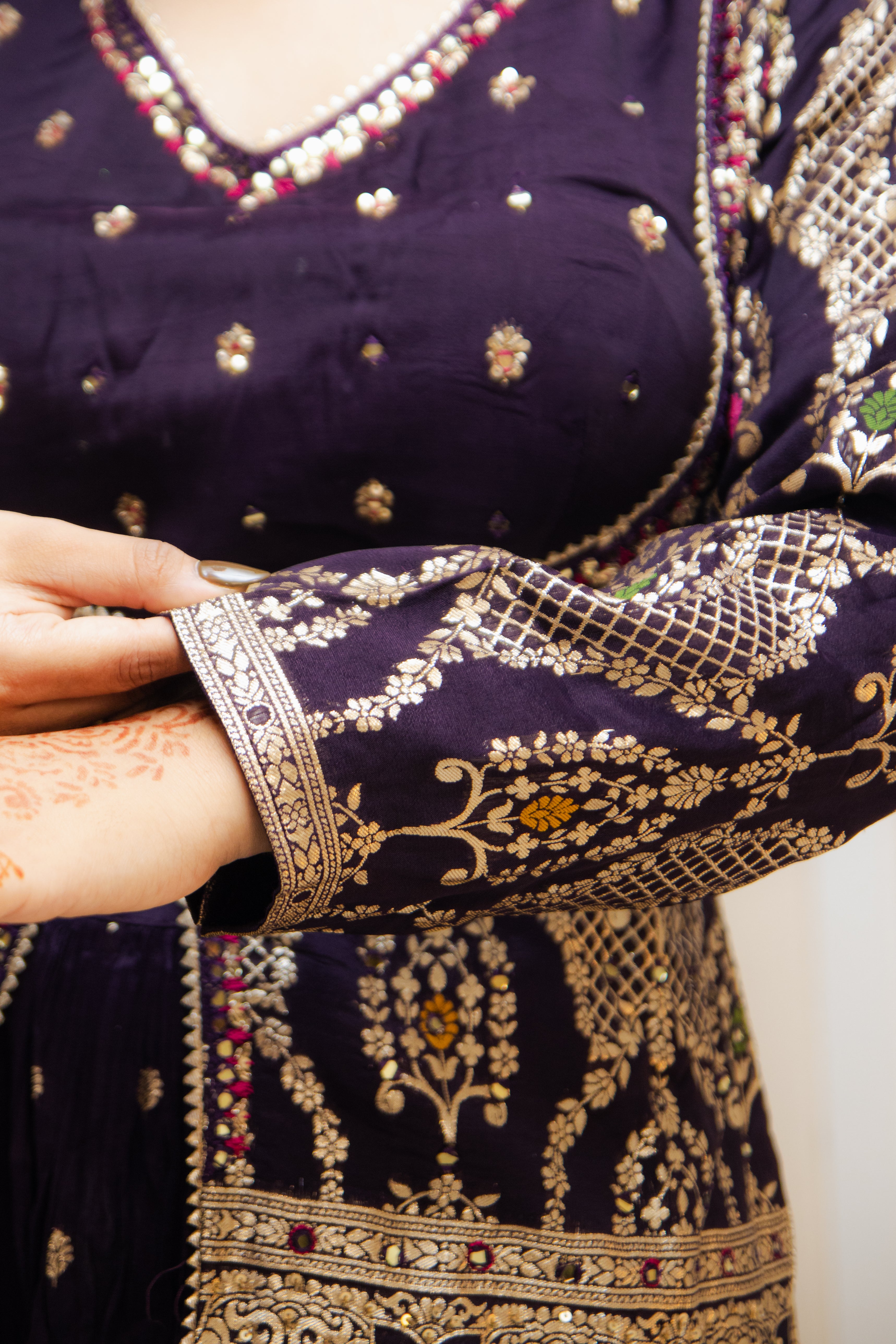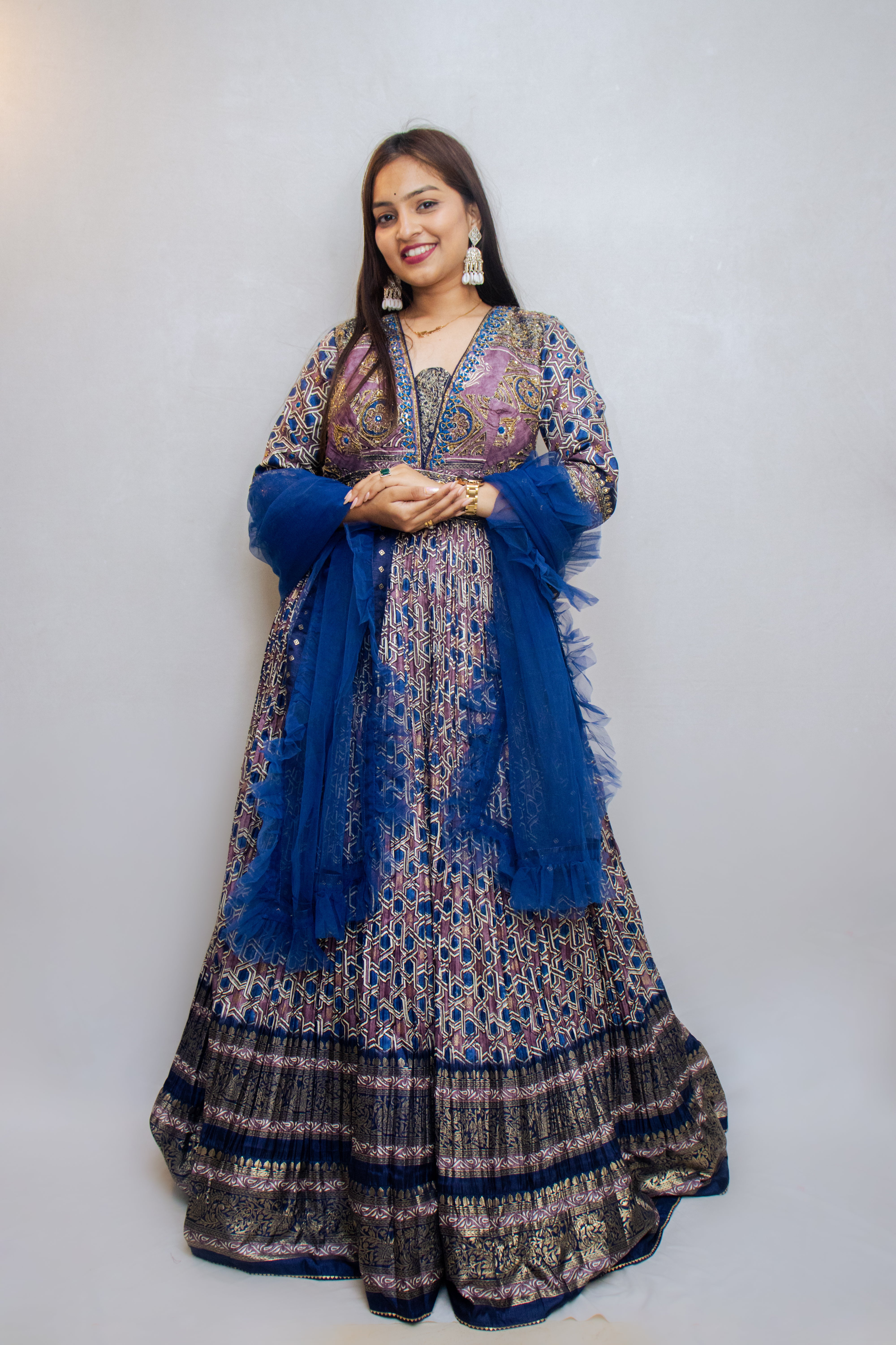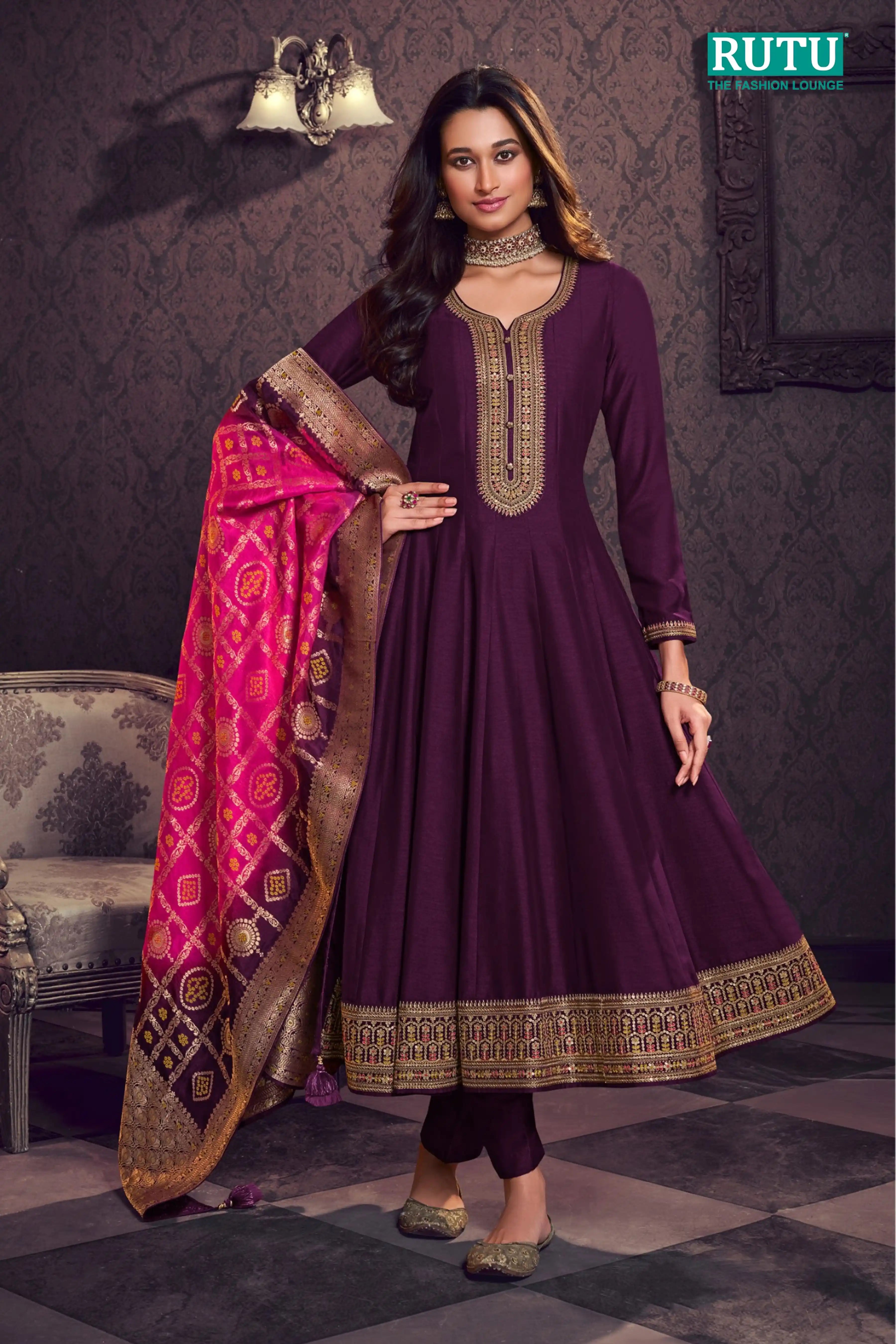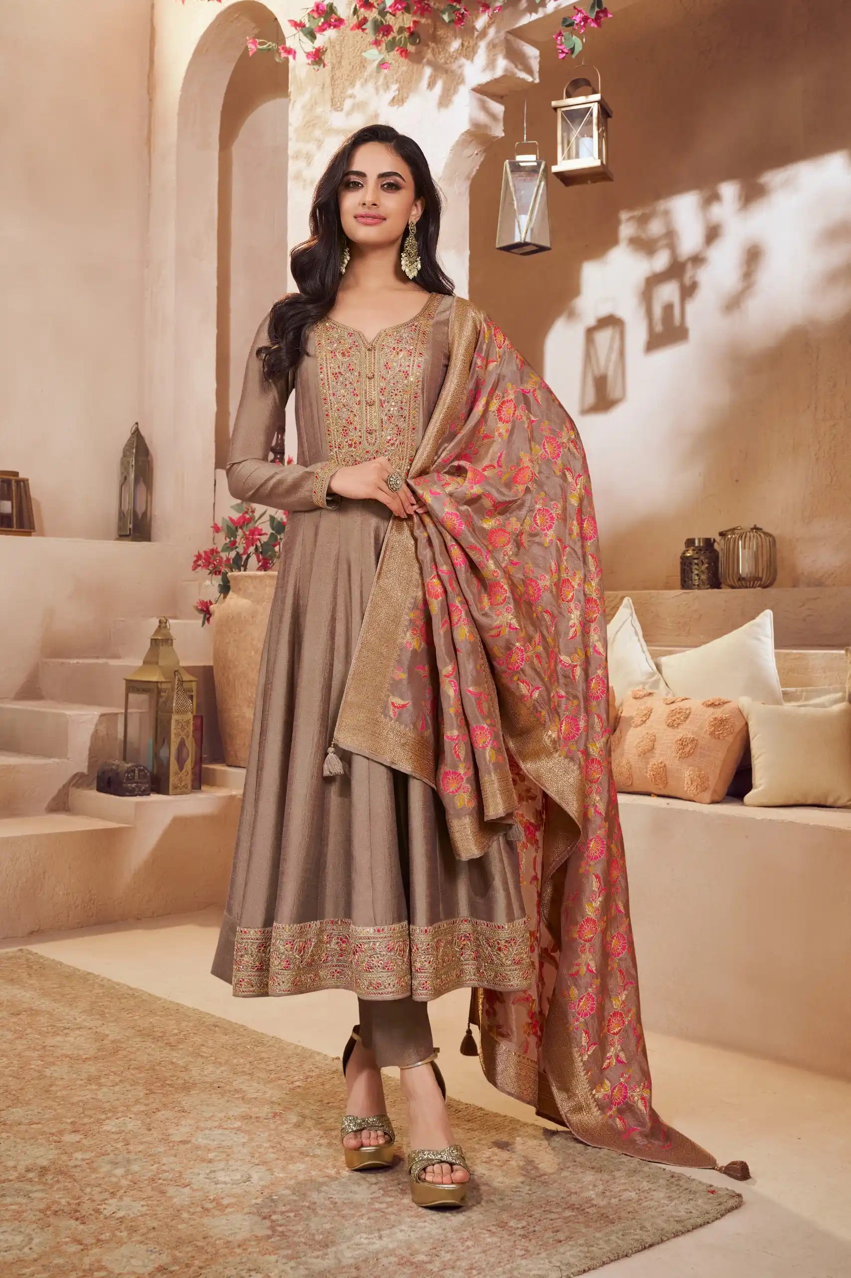 Dusty Rose Anarkali Gown with Intricate Zari Work