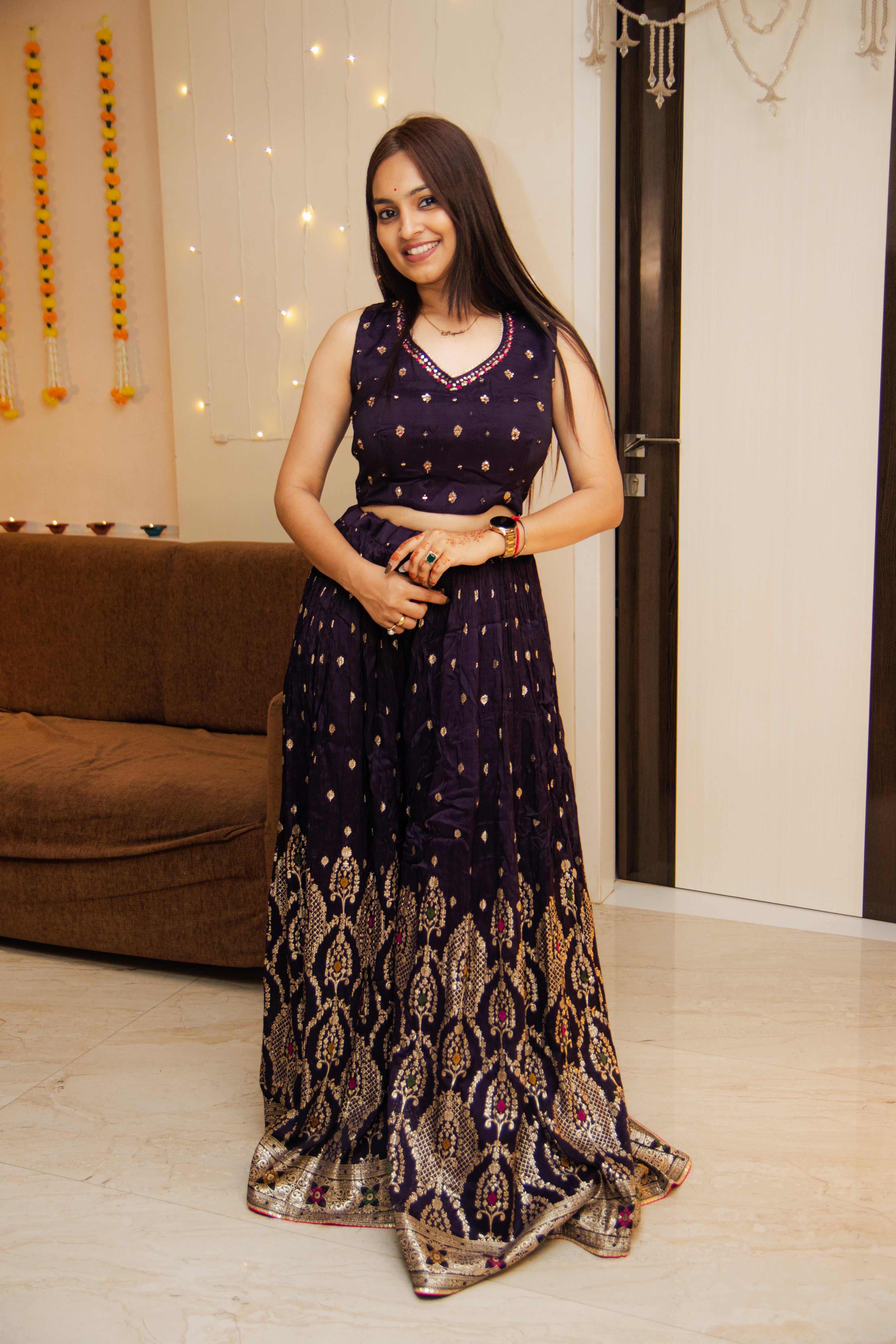 Light pista Silk Ghagraa with Exquisite Hand Work