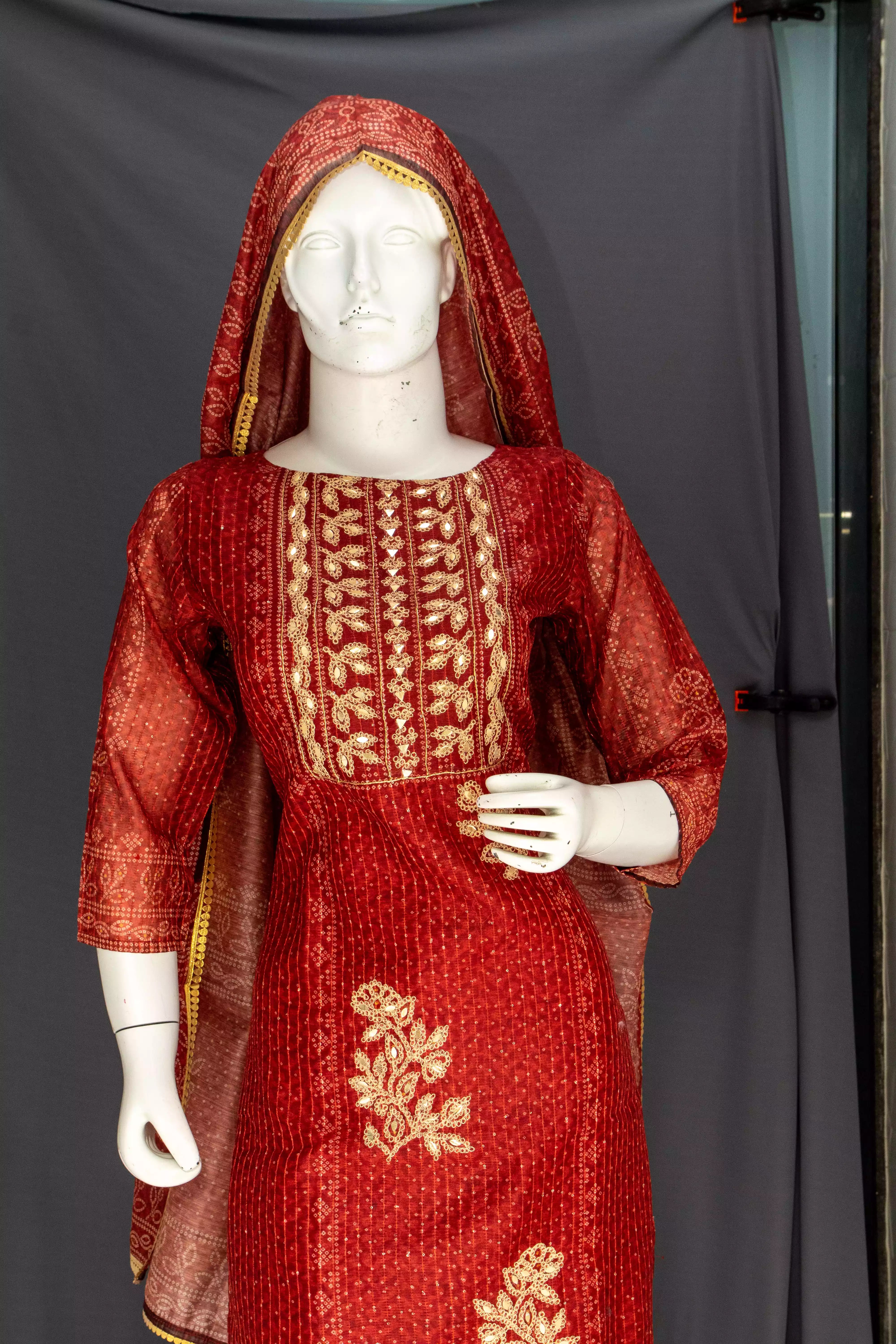 Rust Chandari Pant Suit with Thread Work