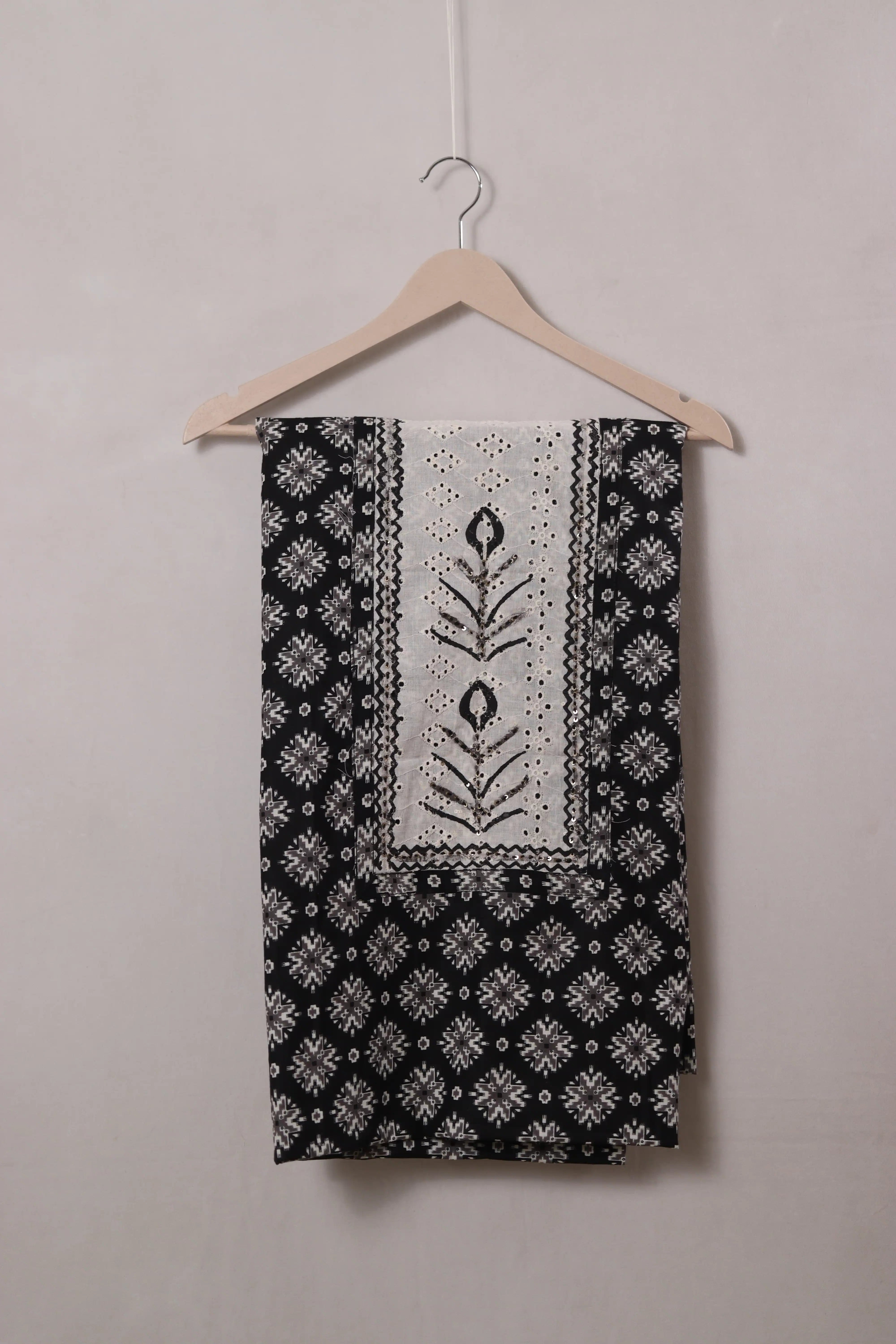 Black Geometric Printed Cotton Dress Material