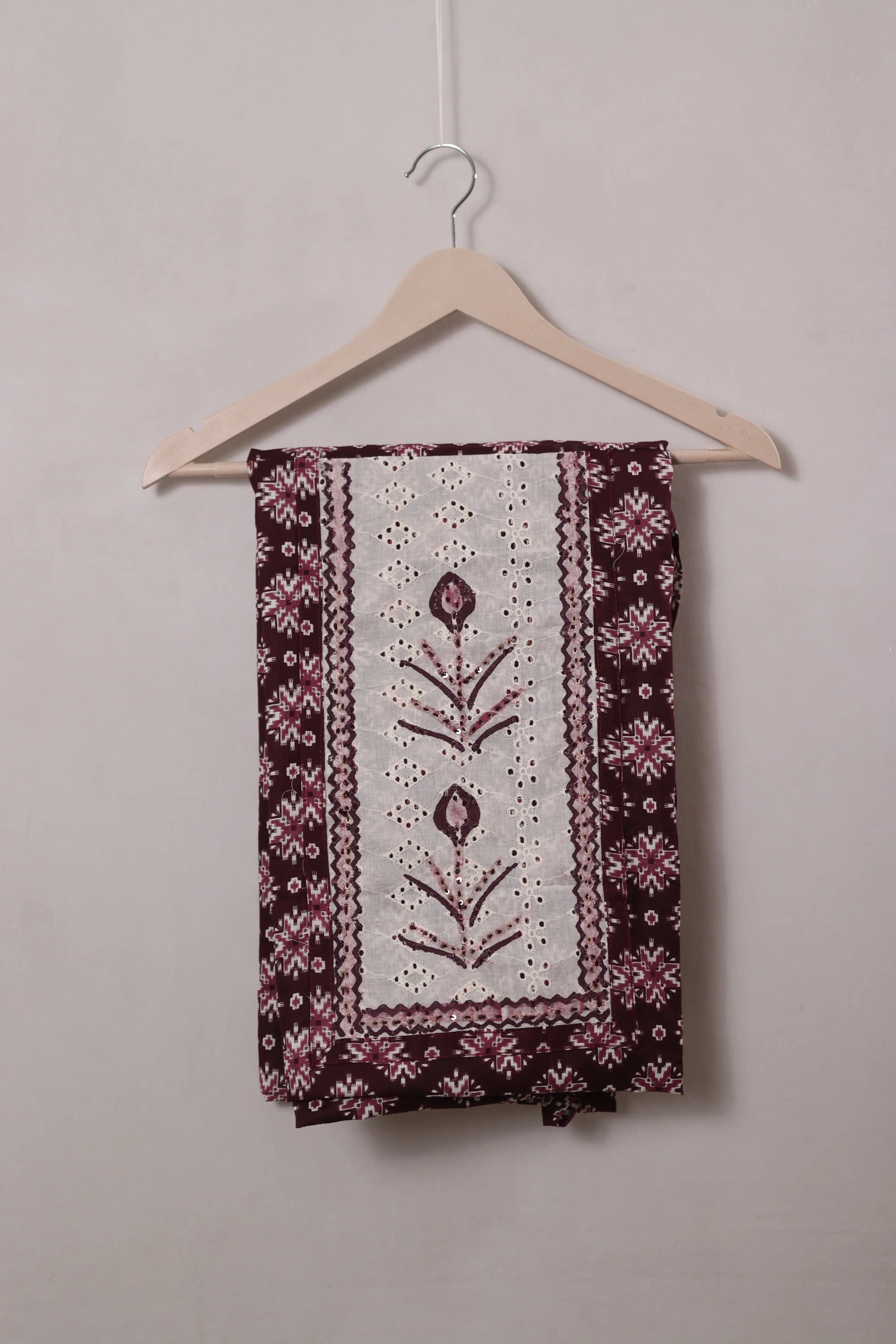 Maroon Geometric Printed Cotton Dress Material