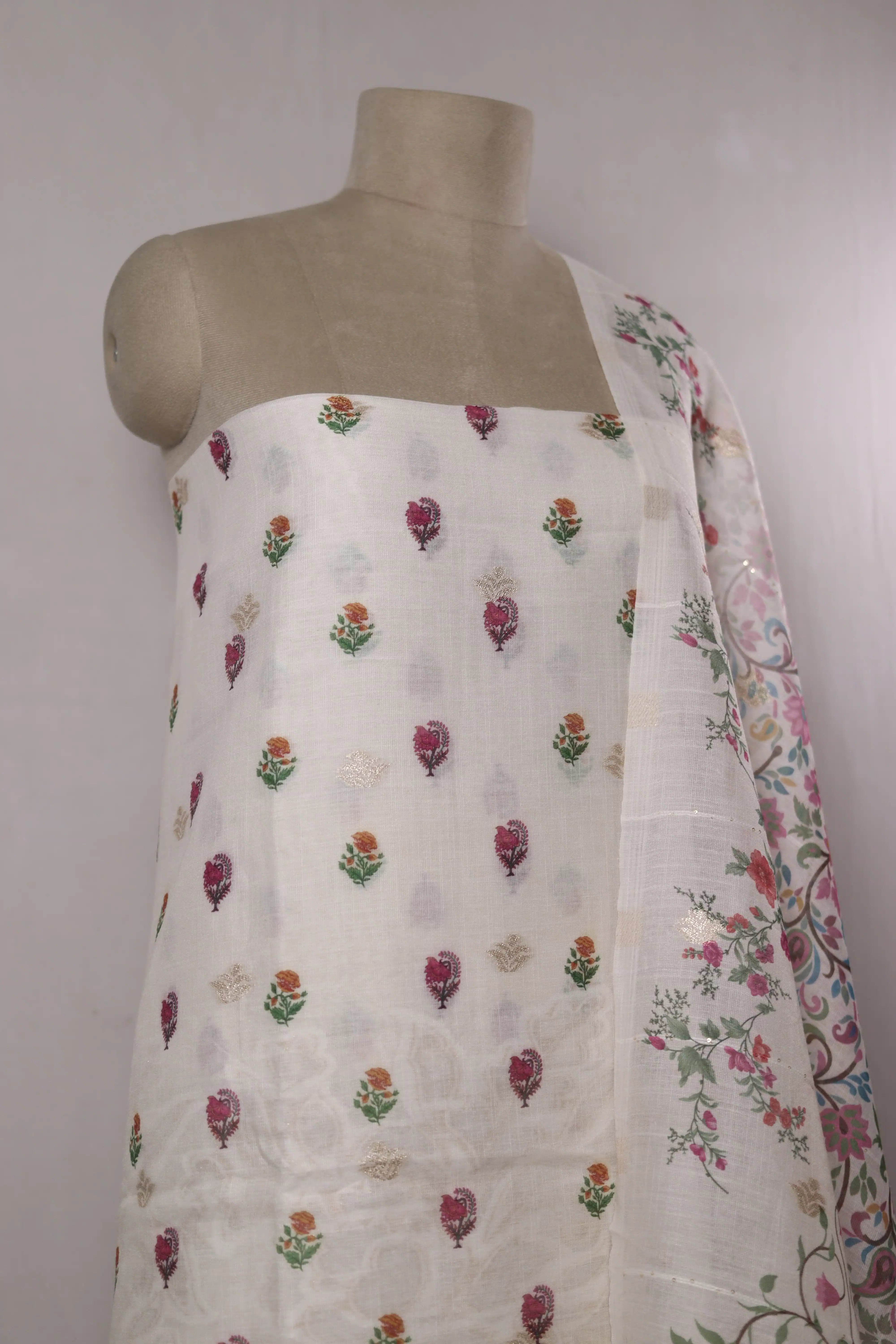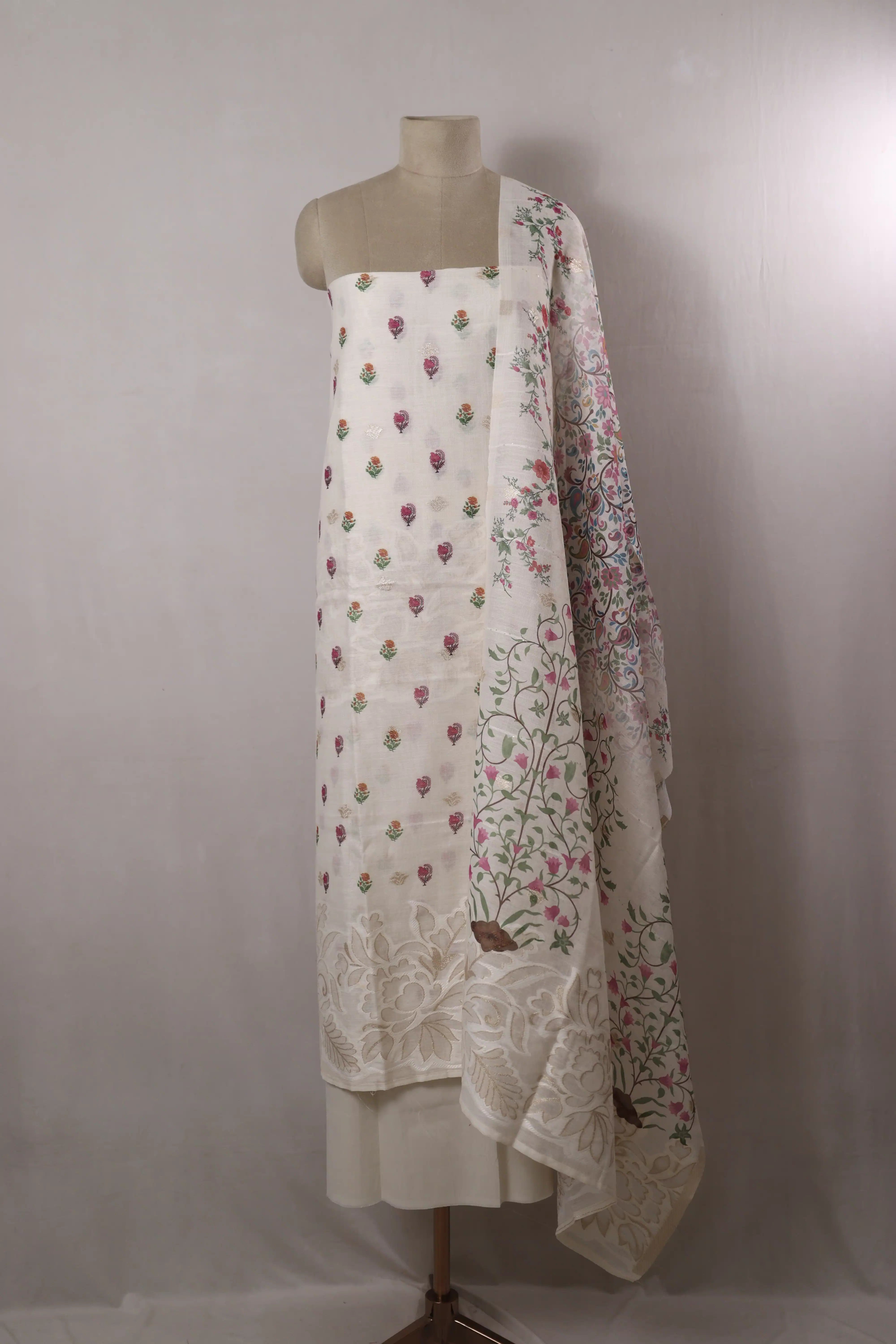 Printed Multicolor Unstitched Dress Material