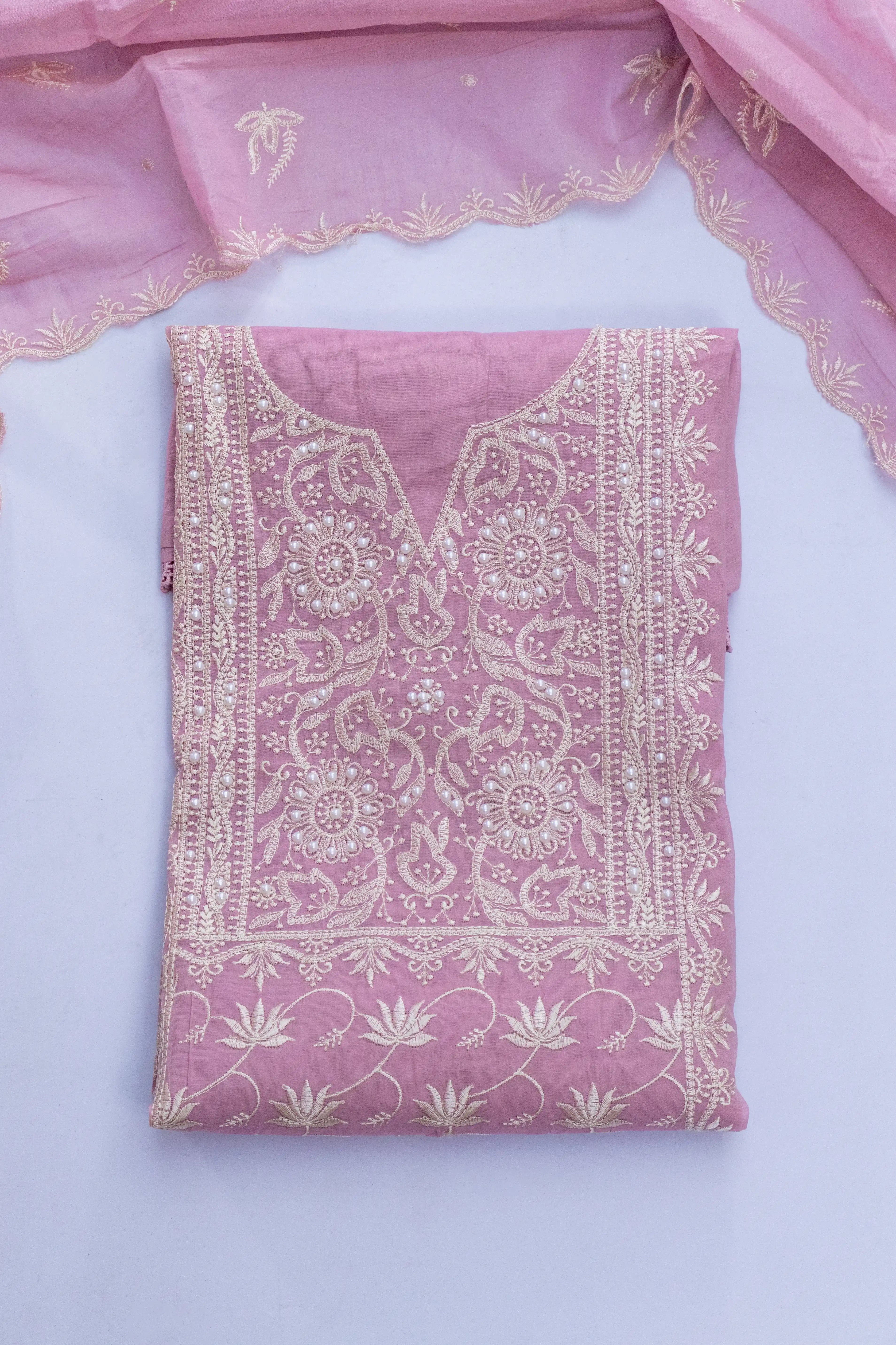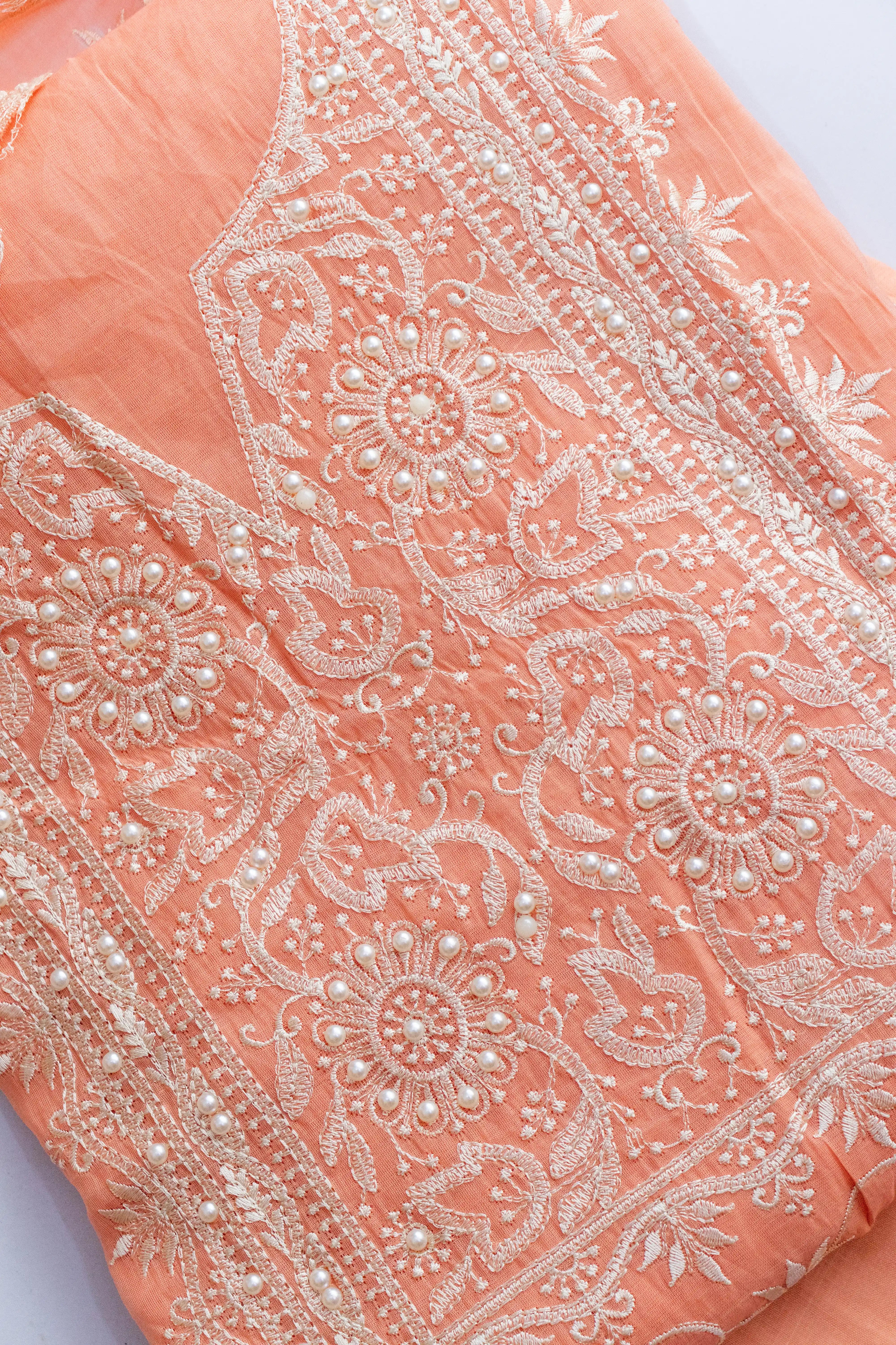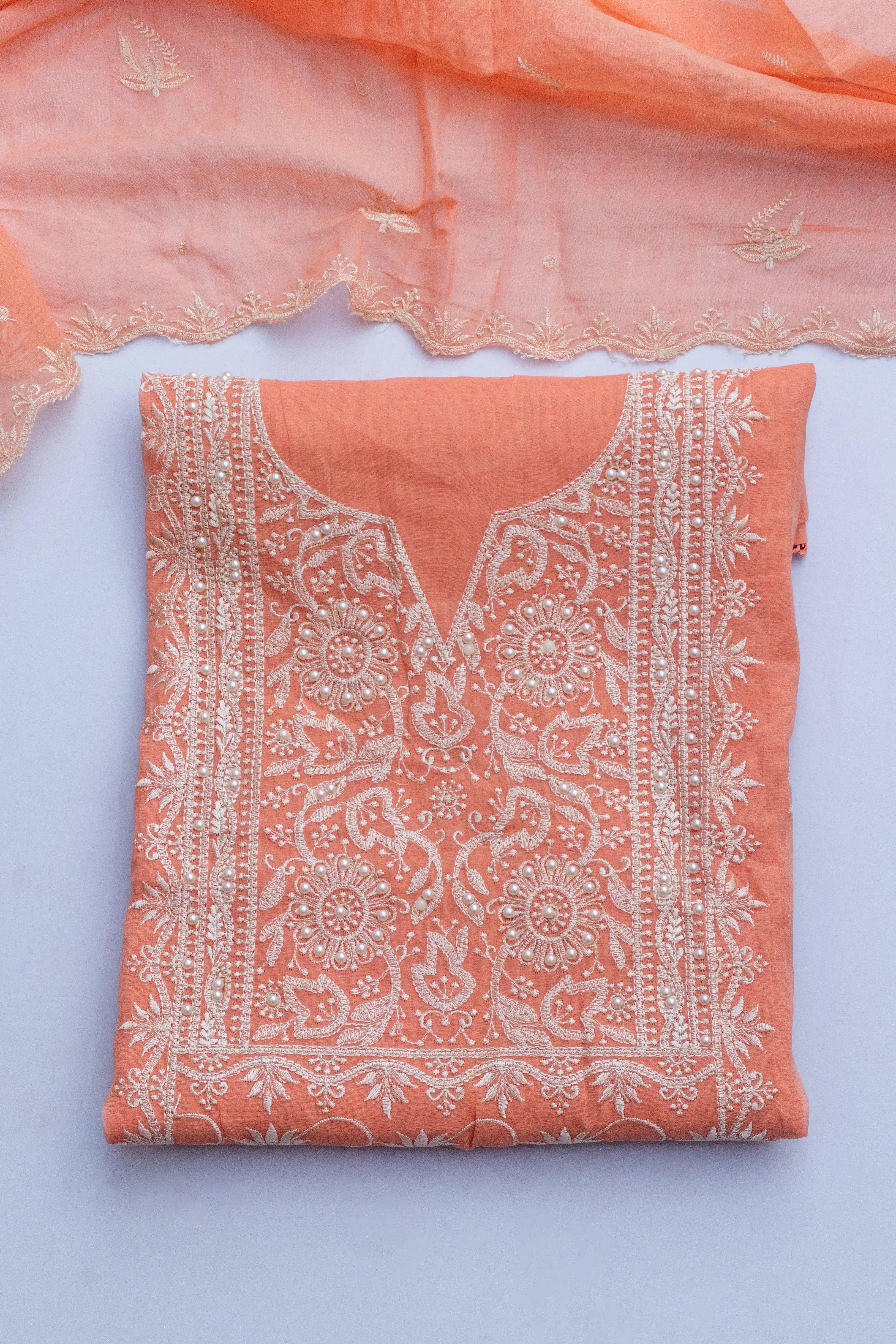 Timeless Chikankari: Peach Embroidered Cotton Suit