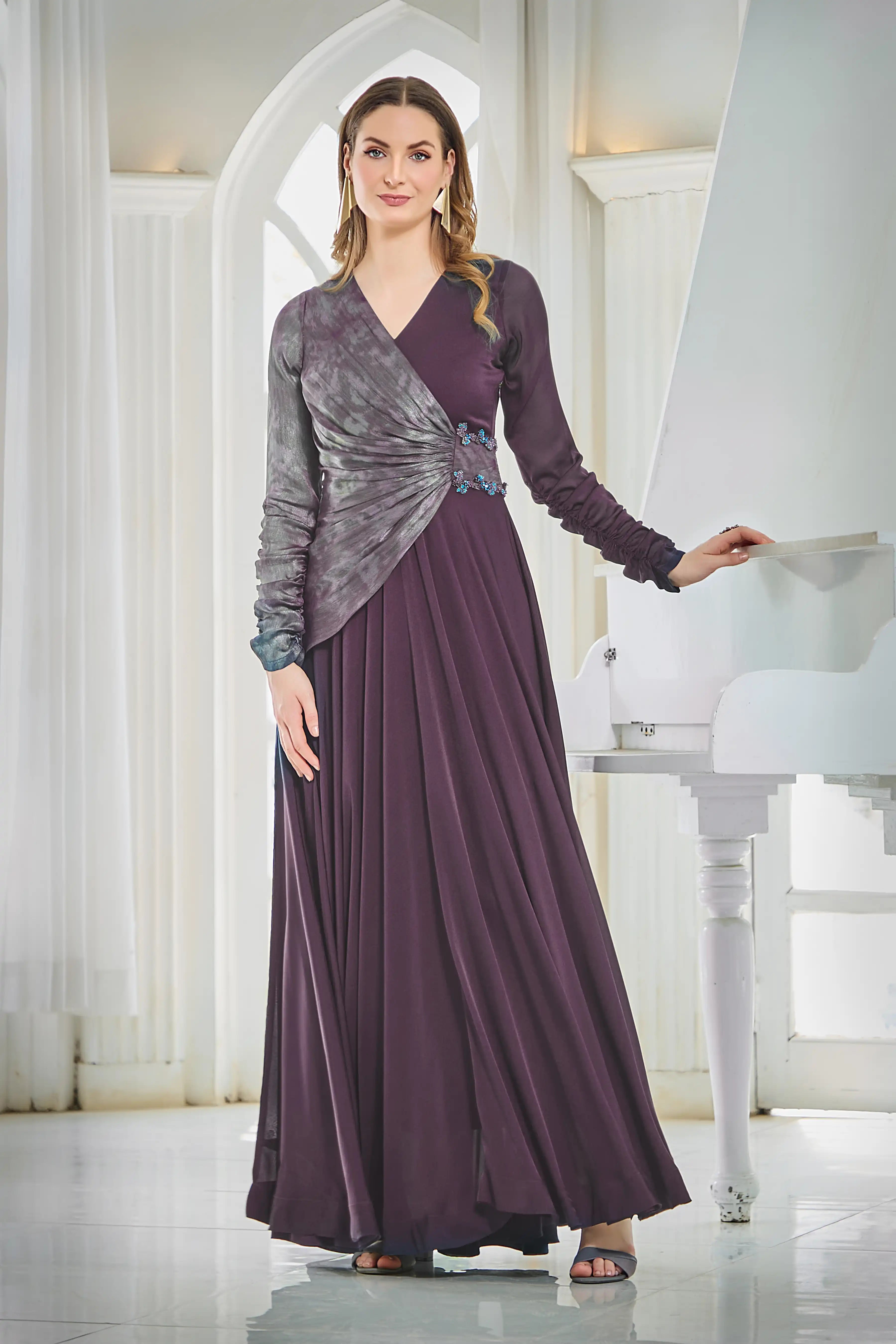 Wine Draped Anarkali Gown