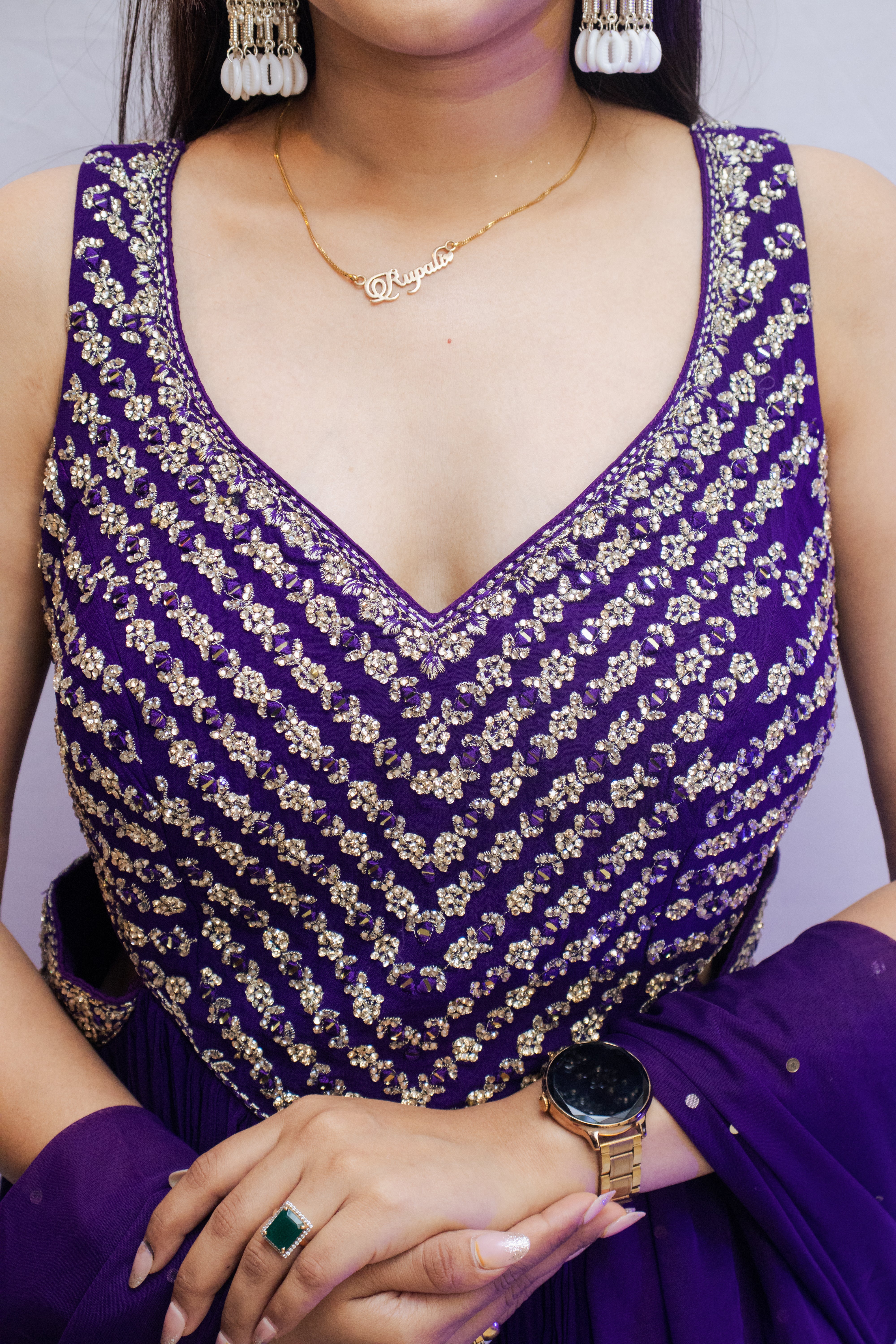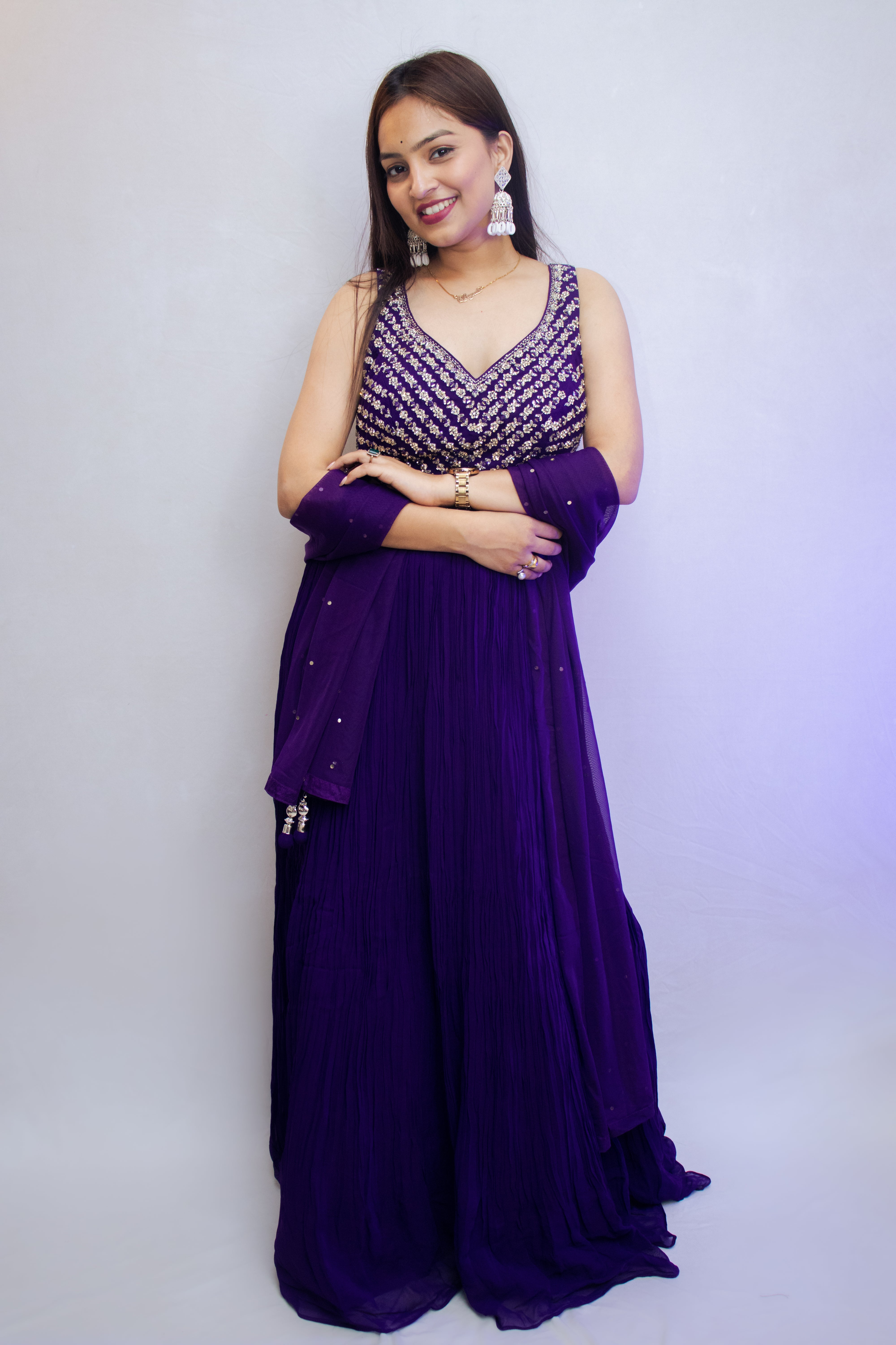 Purple Georgette Gown with Stone Work
