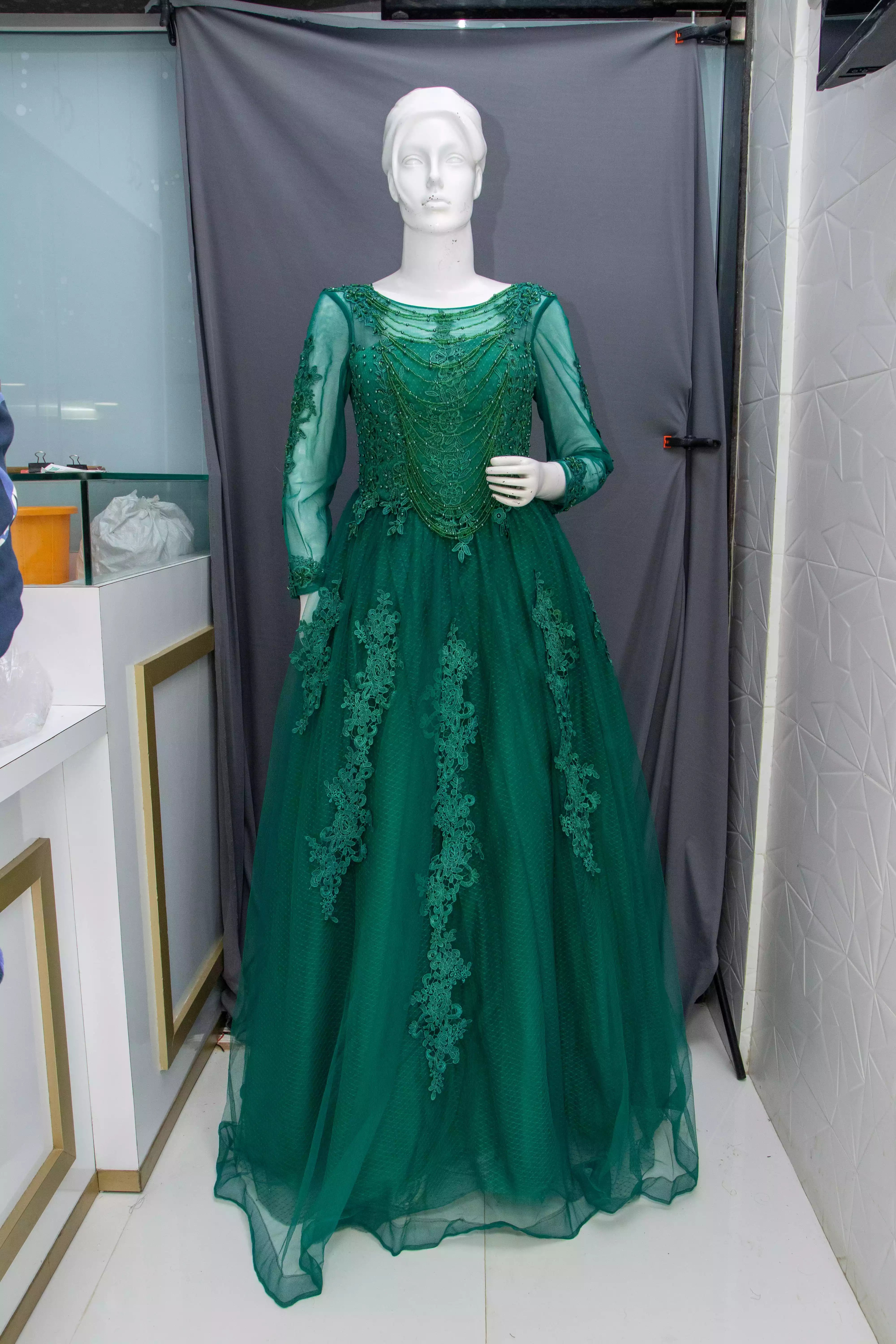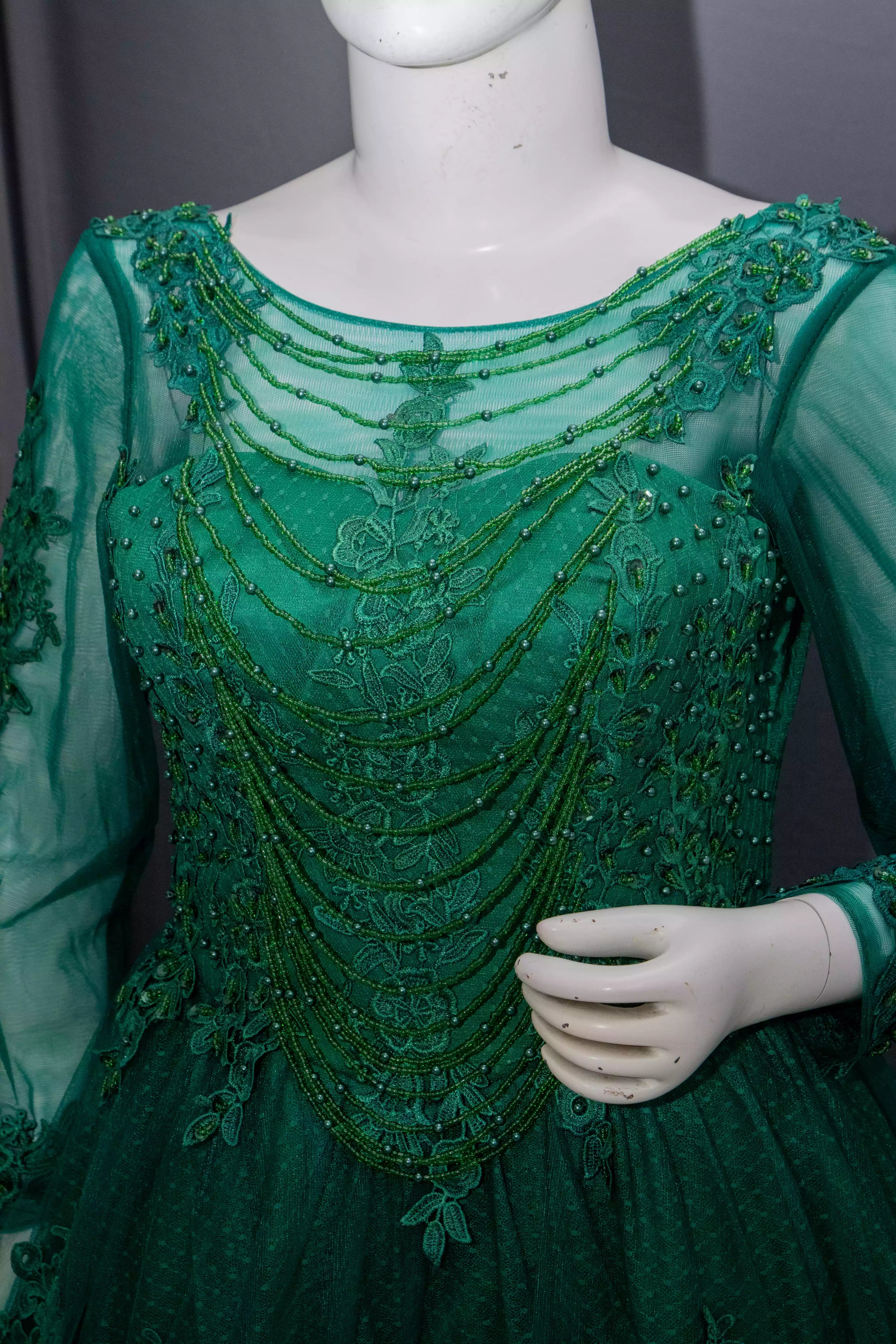 Green Soft Net Gown with Hand Work