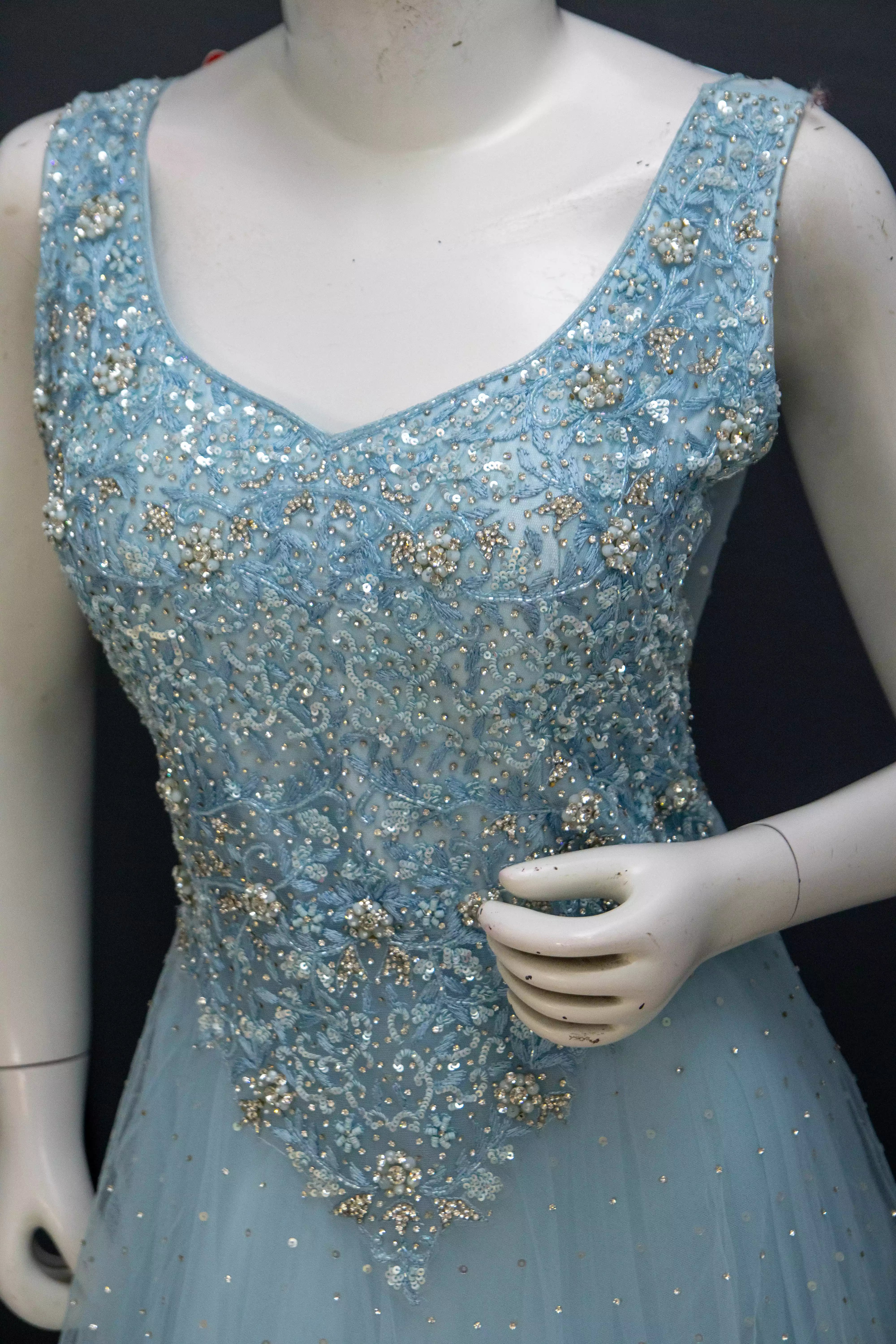 Sky Blue Soft Net Gown with Hand Work