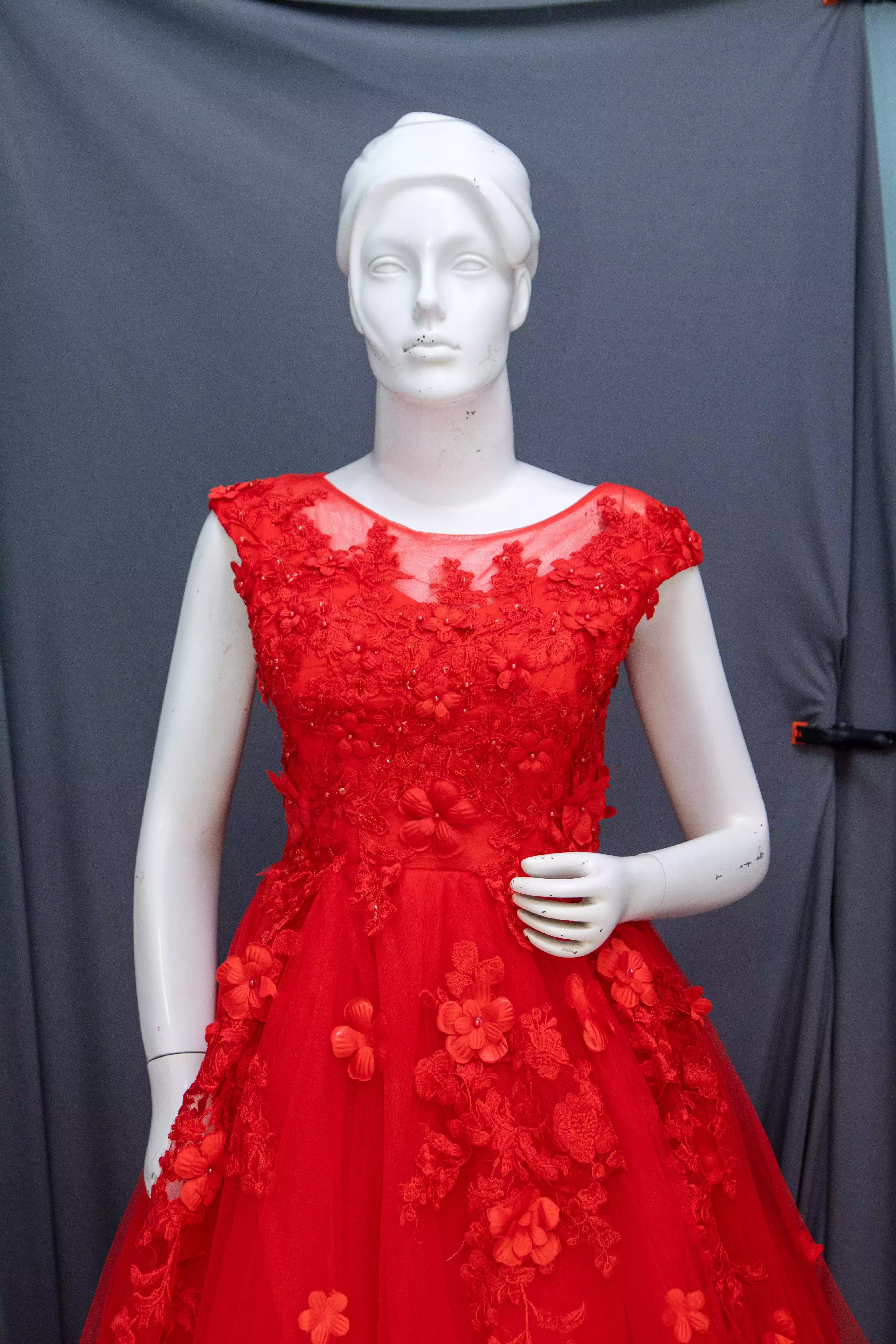 Red Soft Net Gown with Hand Work and Machine Work