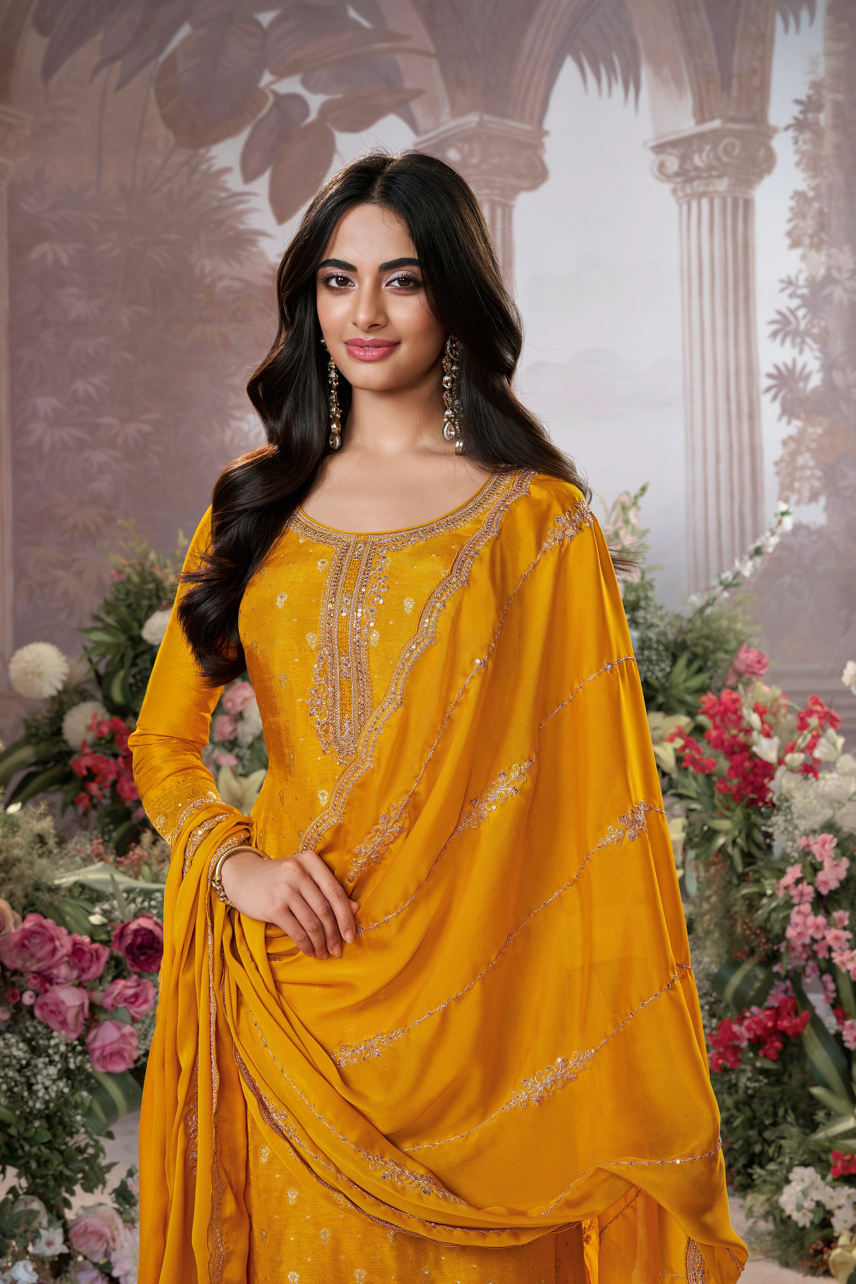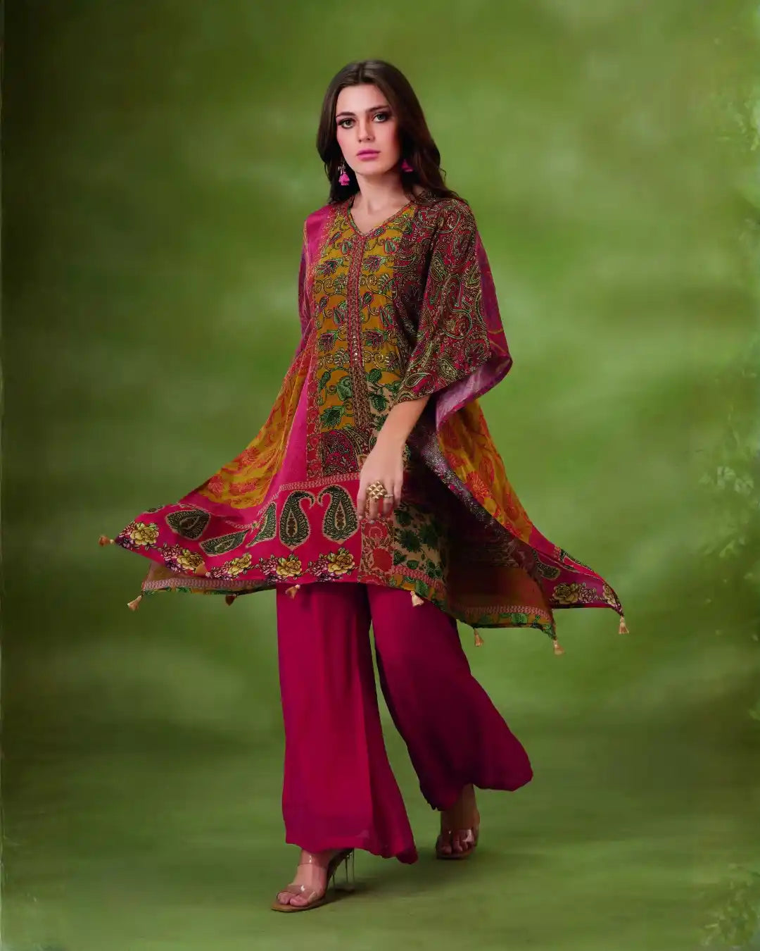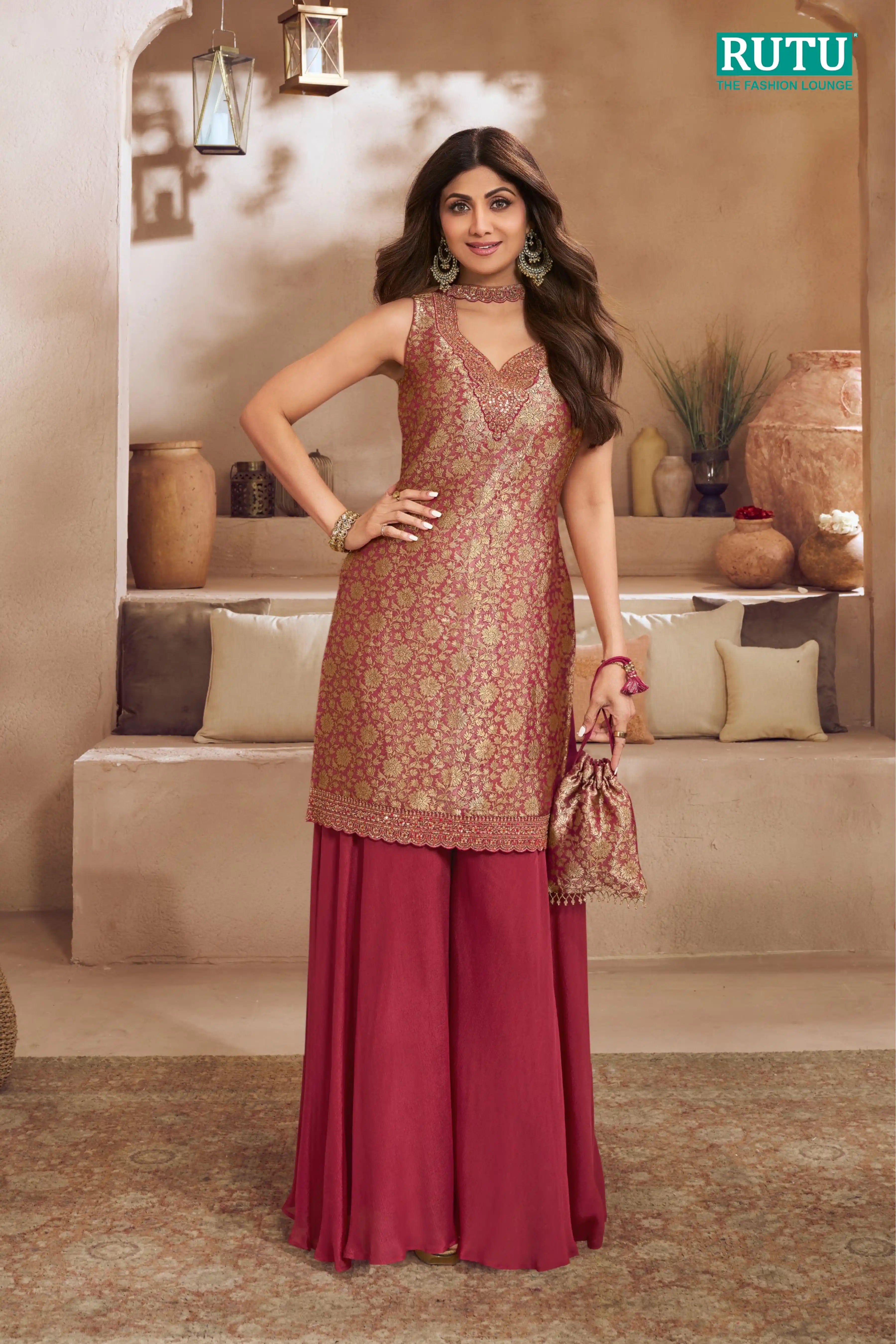 Heavy Embroidered Rani Pink Sharara Suit Set