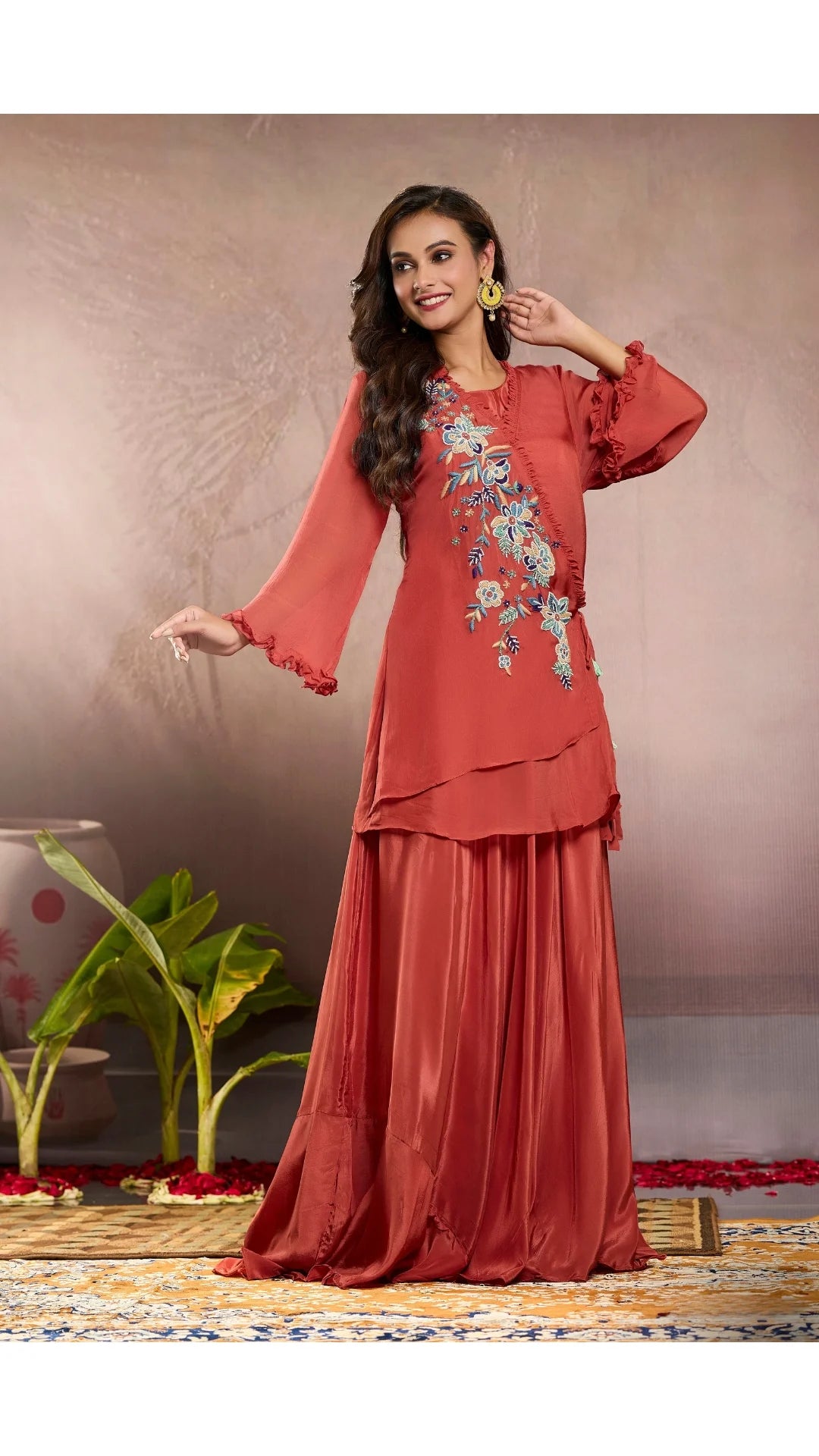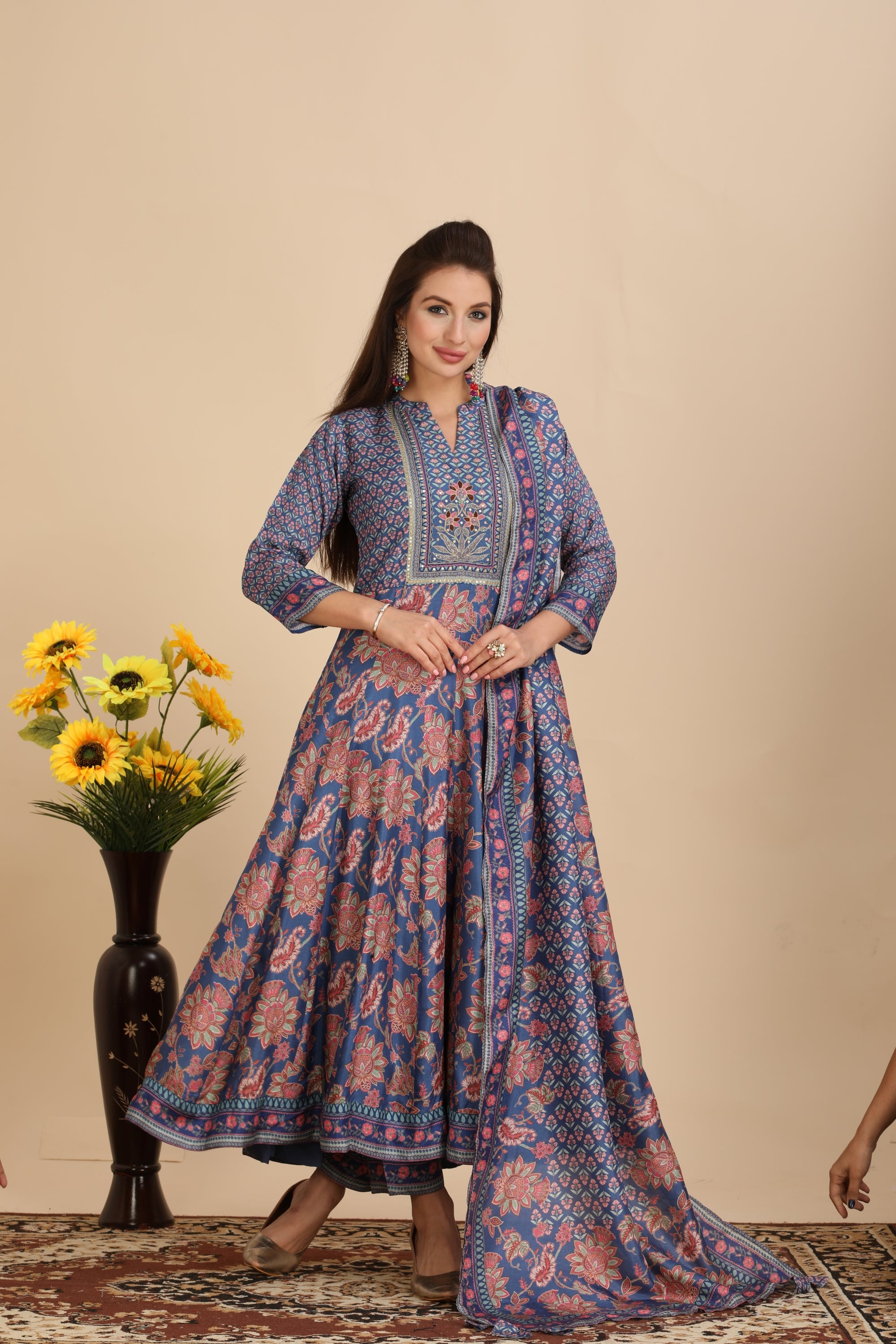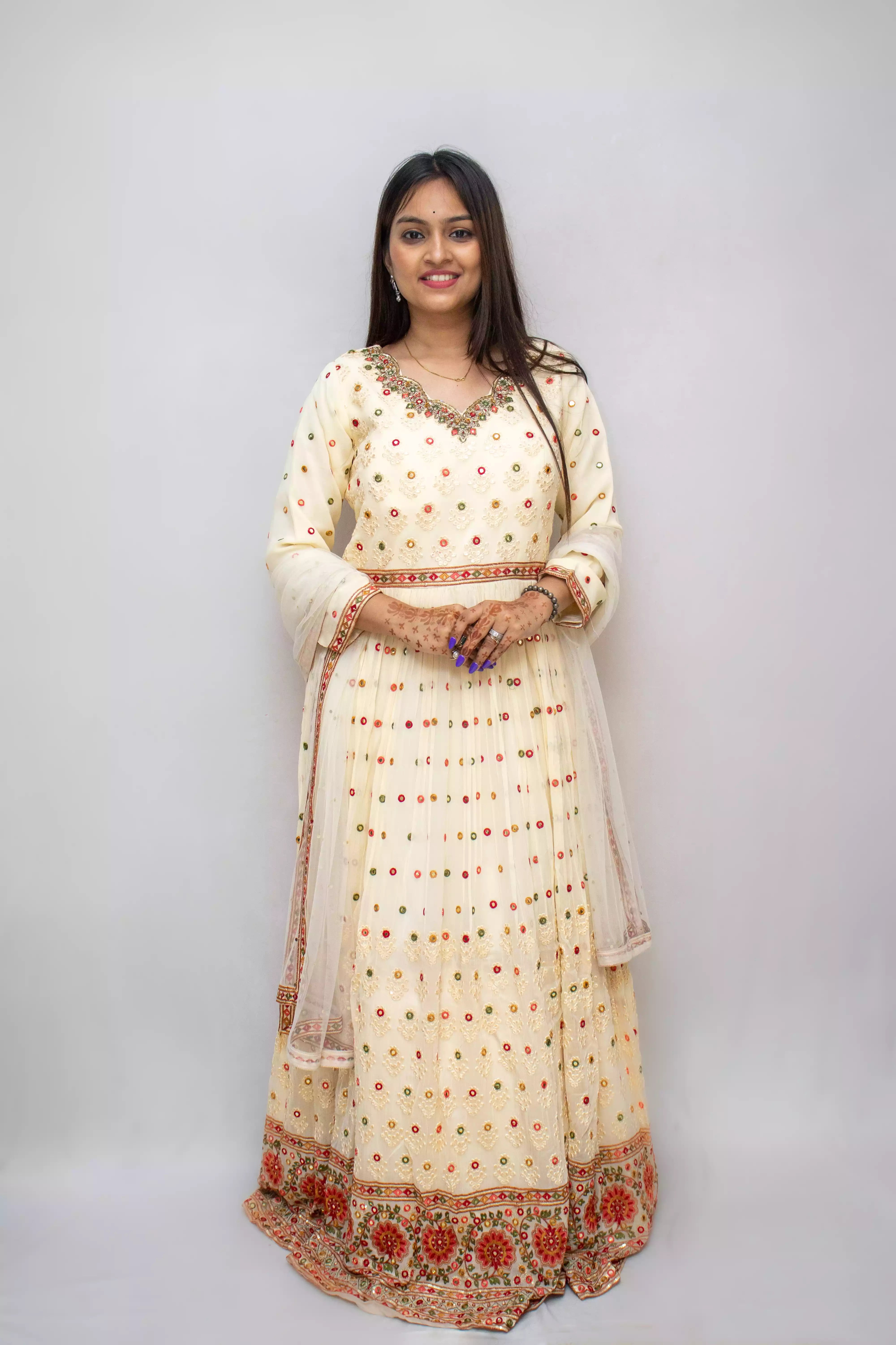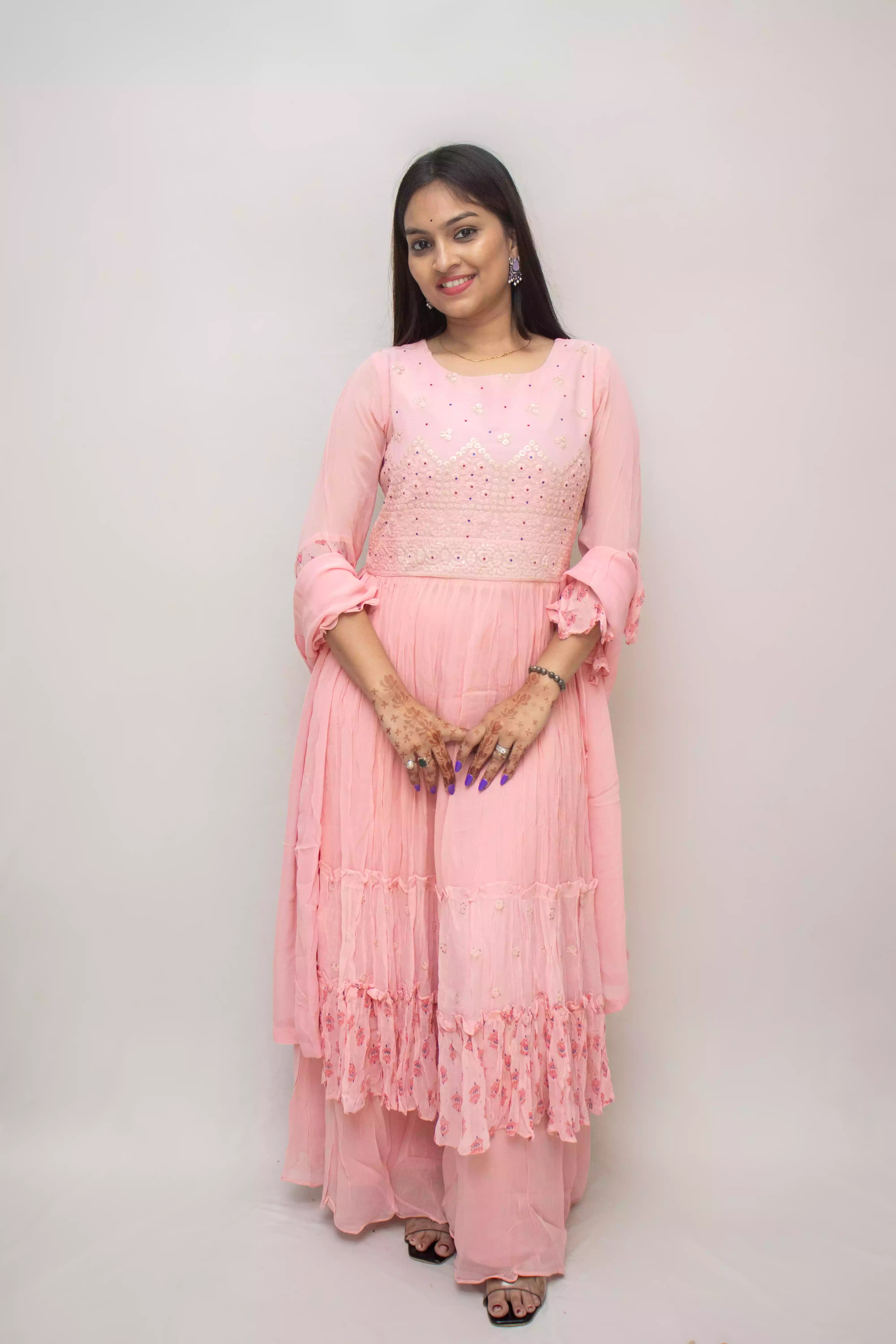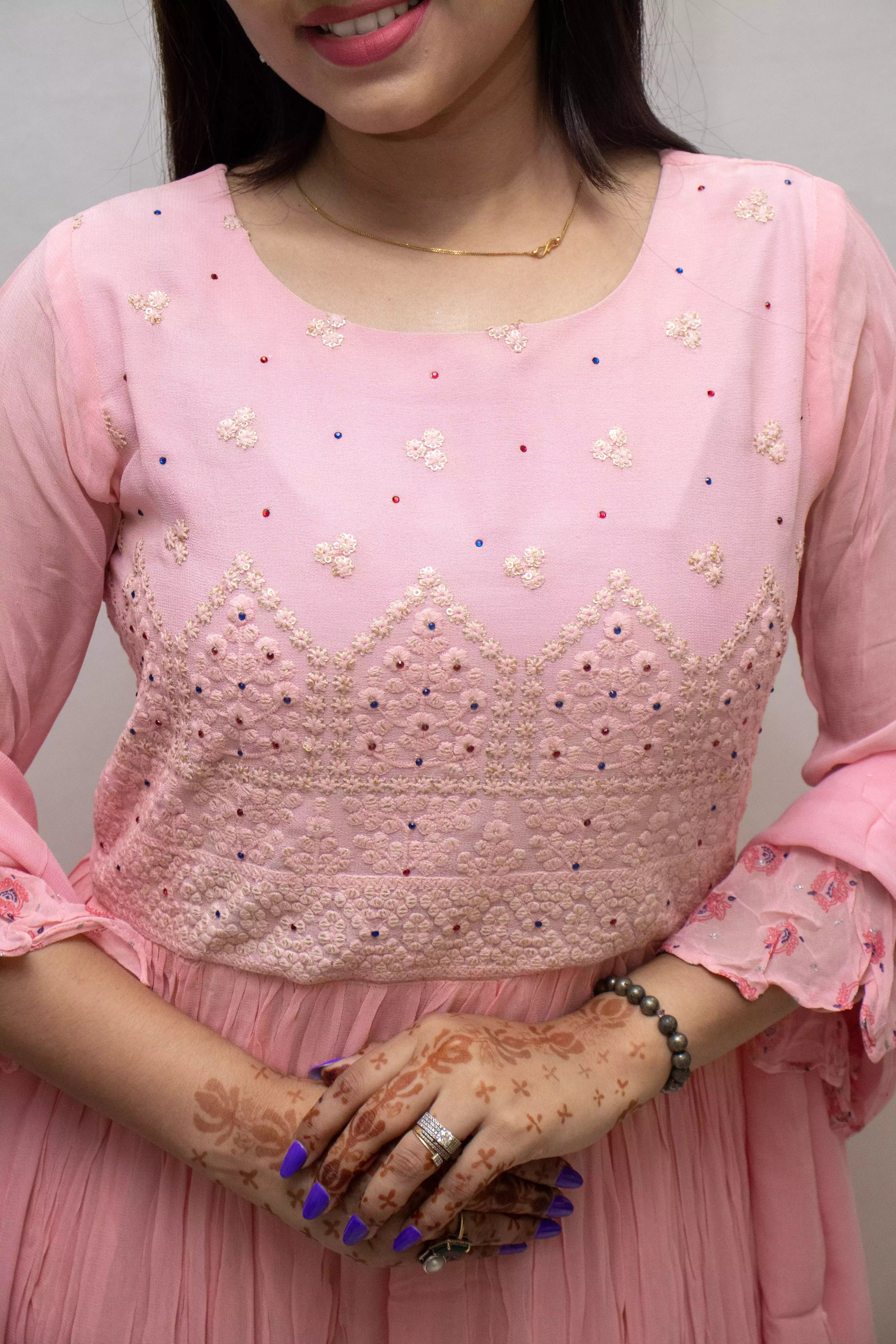 Dusty Rose Anarkali Gown with Intricate Zari Work
